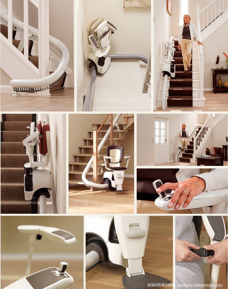 Flow曲线型升降座椅能在多个楼层和螺旋型楼梯使用。楼梯宽度可以非常灵活。此外,自动旋转系统能够使楼梯的空间得到更优化的使用。座椅包括脚凳在运行中能始终保持更佳状态。Flow可以在楼梯的起点和终点,让您安全、简便、舒适的上下。 |