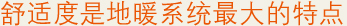对于相同纬度甚至更低纬度的欧洲国家和地区,一个家庭没有空调很正常,但没有家用供暖是不可想像的。地暖系统在户式采暖领域正被越来越多的家庭选择,低暖系统特点就是舒适度,温度从脚底徐徐传递,温暖全身,令我们有非常好的舒适体验。有了地暖的冬天,您的孩子可以肆意的释放顽皮天性,满地滚爬,再也不用担心孩子的手脚或小肚子受凉。