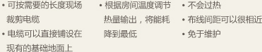 | 泰科电地暖系统以经久耐用、性能卓越、质量优异而闻名于世。其发热电缆由高品质的高分子材料制成,耐久性能突出。泰科电地暖系统享有全面质量保证,产品若出现故障,将为您提供维修服务或更换新产品。 |