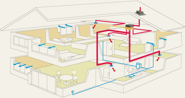 | 爱迪士中央新风系统(VMC):该系统能够保证各类住宅以低能耗的方式在全年365天24小时不间断地工作,在排出室内污浊空气的同时,从室外引入经过处理的新鲜空气,保证健康的室内空气品质.并根据人体的实际需求和室内的活动环境,自动控制和调节进排风量,真正满足客户的需要,并较大程度地降低能耗。 |